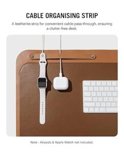 - MULTIFUNCTIONAL DESK PAD – The Dart desk mat boasts unparalleled versatility as a desk organiser. It keeps your workspace neat and well-organised. A leather band riveted to the top left corner of the mat, provides a convenient cable pass-through for organising charging cables. Efficient storage solution – Unveiling a concealed full-length document compartment beneath the top layer, allowing you to neatly organise loose papers and notes, effectively preventing clutter.