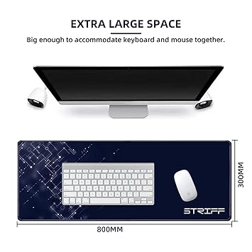 STRIFF Extended Size (800 mm x 300 mm x 2 mm) Gaming Mouse Pad| Stitched Edges| Non-Slip Rubber Base|Computer Laptop|Keyboard Mouse Pad for Office & Home (Divine Blue)