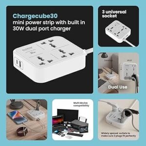 • [Save Space Save Time! A Power Strip Reimagined! ]:The ChargeCube 30 is a powerstrip reimagined! A space saving desk essential that lets you charge 5 devices at the same time in the most compact shape! The ChargeCube 30 features 3 AC Main ports for your office / home essentials such as Monitors, Printers, Scanners, lamps etc. The Type C port is powerful enough to charge a Macbook Air M1/M2, charges any iPhone and Pixel 50% in 30 mins and also supports Super fast Charging for Samsung phones