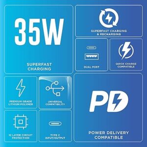 • 35W Turbo Fast Charging — Power That Keeps Pace with You: Charge your MacBook Air up to 40% in just 30 minutes, iPhone 16 to 60%, and Samsung S24 Ultra to 50% — all with blazing speed thanks to QC+PD compatibility.